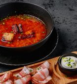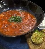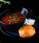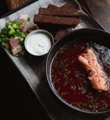 | Борщ с говядиной, слайсами соленой грудинки на ржаных гренках | от 9 руб. |