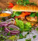 | Бургер с курицей, сыром и жареным беконом (455 г) | от 19 руб. |