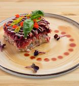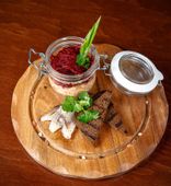 | "Шуба от Шефа" с лососем гравлакс и свекольной вуалью | от 23 руб. |