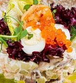 | Оливье с индейкой, печеными овощами, лангустином и красной икрой | от 25 руб. |