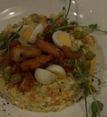 Отзыв. Были в заведении в первый день работы открытой террасы. Вид на озеро чудесный, рядом есть детская площадка. Вся терраса была заполнена, мы предварительно бронировали столик. Много людей с детками, мы не стали исключением.Очень приветливый персонал, обслуживание быстрое и ненавязчивое, официанты с юмором :). Заказывали теплый салат с уткой (вкуснейшая заправка и очень нежное мясо утки!) и "Оливье" с уткой и перепелиными яйцами (очень интересная современная подача!), на горячее брали рыбу -- все очень вкусно! Цены умеренные, порции щедрые.