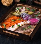 | Закуска по-деревенски с запеченным куриным филе | от 15 руб. |