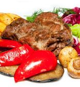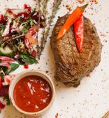 | Стейк из говядины с овощами и пюре из сладкого перца | от 29 руб. |