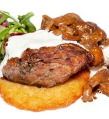 | Стейк из говядины с картофельным пюре и пряным маслом (170/160/30/2 г) | от 34 руб. |