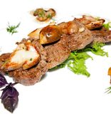 Особенно понравился стейк из говядины с грибным рагу.