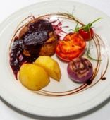 | Стейк из говяжьей вырезки с вишнево – шоколадным соусом | от 36 руб. |