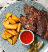 | Копченые свиные ребра с картофелем фри и салатным миксом | от 35 руб. |