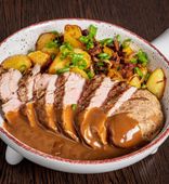 | Кордон Блю из говядины с пармой под грибным соусом с печеным картофелем | от 35 руб. |