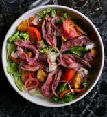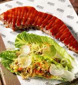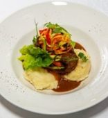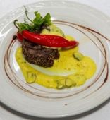 Отзыв. Всё было вкусно, особенно говядина фламбе на фото, красиво было подано, ярко, то что нужно для настроения.