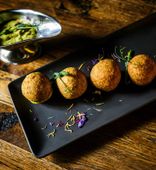 | Ломтики запеченной свеклы с пармской ветчиной, базиликовым песто и карамелизованным грецким орехом | от 7 руб. |