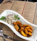 Отзыв. Были 22 февраля 2020, ведущий (ему 10 из 10) вытягивает как может, чтобы скрасить весь ужас от того, что готовят повара, если можно назвать так людей, изготавливающих то, что есть в меню. Заказали 5 видов салатов, мешанина, ни один не соответствовал тому, что забито в меню. Яйца фаршированные грибами - были яйца, лук, майонез. Тоже самое со всеми холодными закусками - все осталось на тарелке на выброс. Горячее - есть можно было только картофель фри, из 4 видов предложенного было и мясо, и птица, все пресное, жёсткое. Толпа людей в баре, в туалет очередь как во дворце республики на концерте Стаса Михайлова, а гардеробщик, пытающийся выдать нам чужое пальто, это вообще отдельная тема. Жаль времени, настроения, ну и денег в конечном результате. Не советую никому.