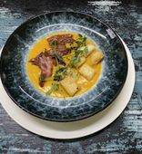 Отзыв. Побывали в этом кафе. Итак, расскажу впечатления. Стейк говяжий прожарки медиум рер - вообще что-то бесподобное, хотя он не большой, но такого вкусного я еще не ела, сочный, восторг. Потом, голенка просто огромная, можно спокойной брать одну на два три человека без проблем. Цеппелины - если никогда не ели, то стоит пробовать здесь, чтобы понять что это такое, ибо вкусно, сказали, что напоминает домашние, такие как надо по консистенции, супер. Супчик, мы потом дозаказали порцию, следовательно тоже круто. У тартара с лососем очень удобная подача хлеба, брать удобно. Это топ из того, что мы брали, из десертов понравился морковный. Пиво литовское пила первый раз, необычно, попробовать стоит. В общем 5 баллов, не смотря на то, что далеко, решили, что придём еще не раз.