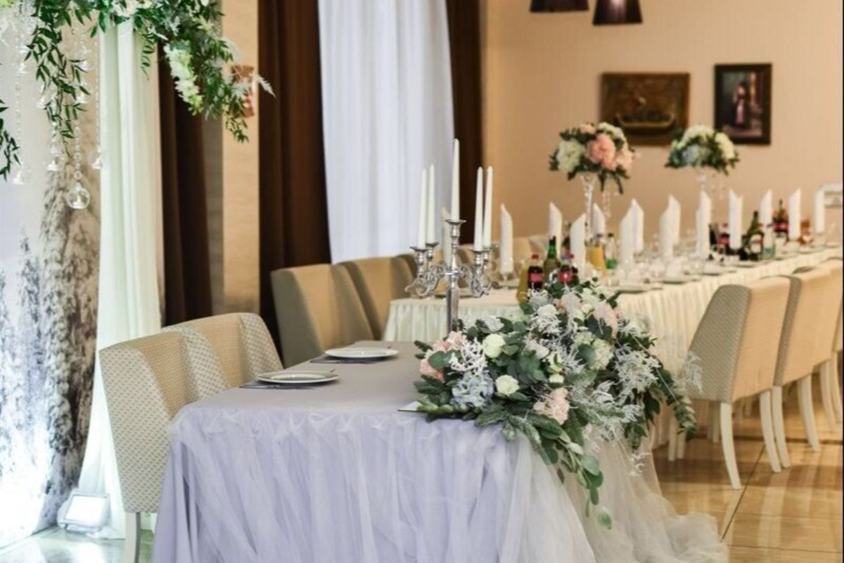 Ресторан для свадьбы в Минске: два банкетных зала на 65 гостей каждый, выездная регистрация, свадебный администратор, место для фотозоны.