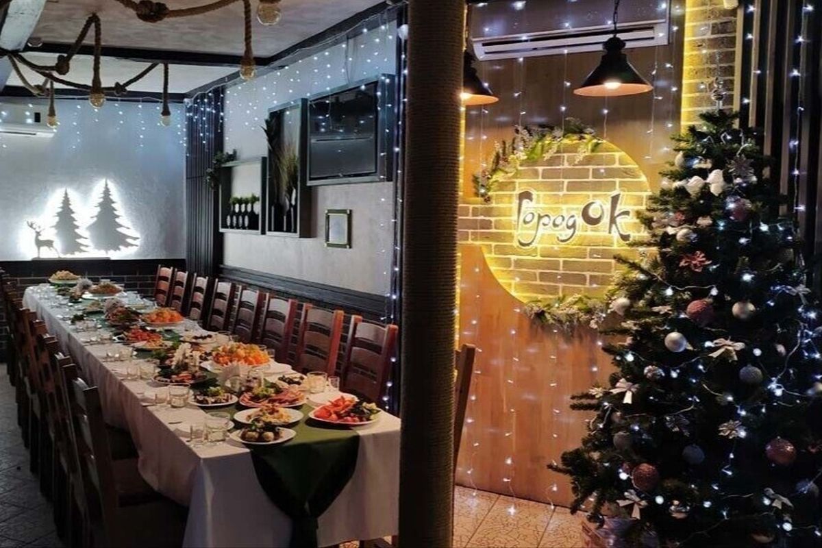 Кафе для Новогоднего корпоратива 2026 возле Северного сквера: ведущий, Дед Мороз и Снегурочка, живая музыка.