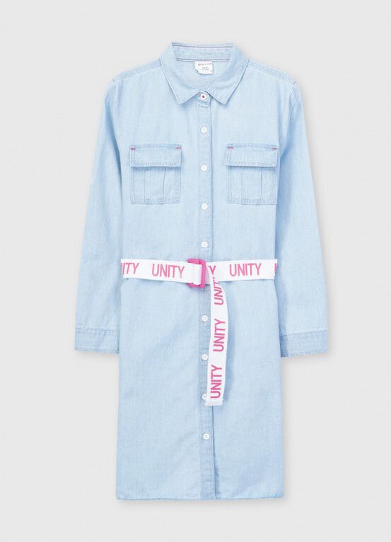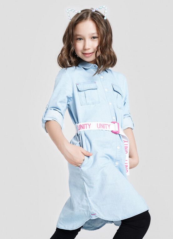 - Платье-рубашка из лёгкого денима с поясом