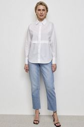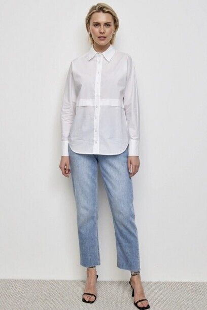 Классическая блузка-рубашка Oversize из 100% хлопка торговой марки Bulmer, капсула Early Autumn. Свободные рукава с высокими манжетами. Рубашечный воротник. Застежка на пуговицы. Манжеты с застёжкой пуговицей. Без декоративных элементов.