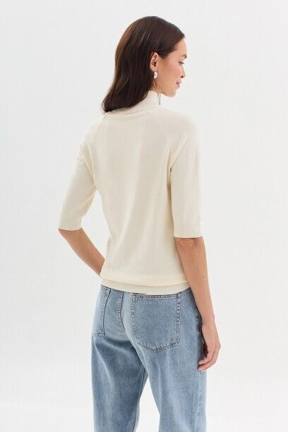 Трикотажный джемпер Savage, пре-коллекция New classic 2024. Материал изделия: вискоза, нейлон. Короткий рукав. Воротник-стойка. Без декоративных элементов.