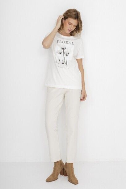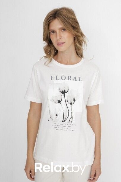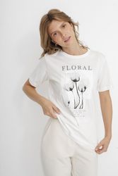 Футболка капсулы City Night из 100% хлопка. Прямой крой. Короткий втачной рукав. Округлый вырез горловины. Крупный флоральный приинт с надписью.