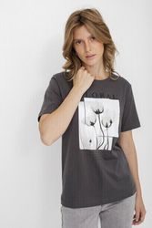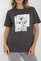 Футболка капсулы City Night из 100% хлопка. Прямой крой. Короткий втачной рукав. Округлый вырез горловины. Крупный флоральный приинт с надписью.