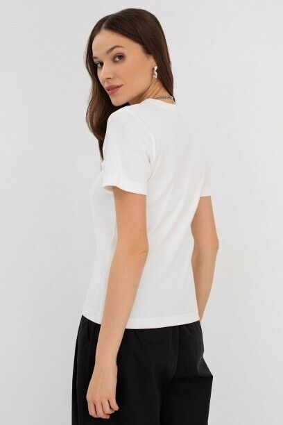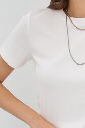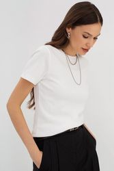 Футболка в мелкий рубчик, капсула Basic. Материал изделия: хлопок, полиэстер, спандекс. Укороченная модель. Полуприталенный силуэт. Круглый вырез. Страна производства: Китай.