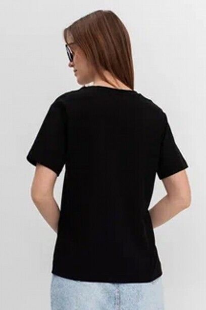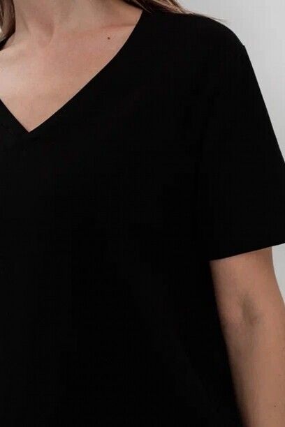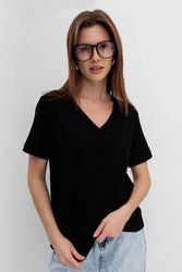 Базовая футболка, капсула Basic. Материал изделия: хлопок, спандекс. V-образный вырез. Прямой силуэт. Без декоратиных элементов. Страна производства: Узбекистан.