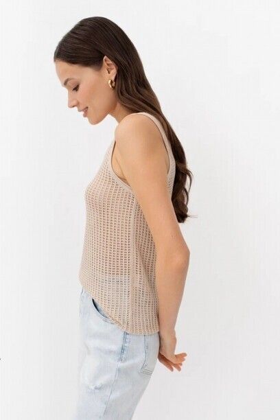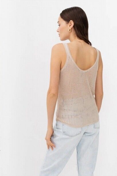 Тонкий вязаный топ, капсула Lavender orient. Материал изделия: вискоза. Ажурная вязка имитирует вязку крючком. Круглый вырез. Прямой силуэт. Страна производства: Китай.