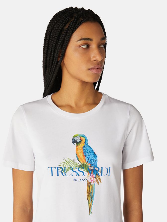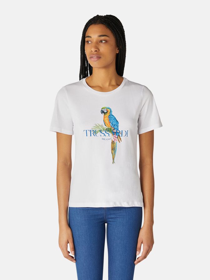 Футболка с принтом попугая.