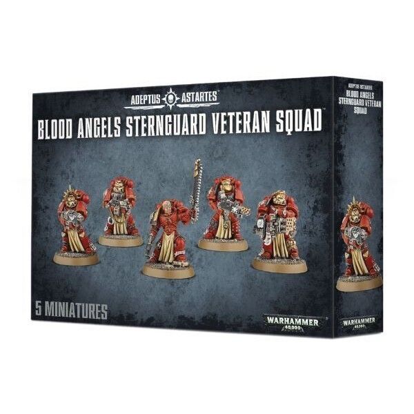 Сержанту отряда Blood Angels Sternguard Veteran Squad полагается специальное украшение на шлем и цепной меч (или силовой меч). Отряд можно экипировать фраг или крак гранатами. Кроме этого в наборе находятся сумки для патронов, ауспекс, икона на ранец и боевые ножи.