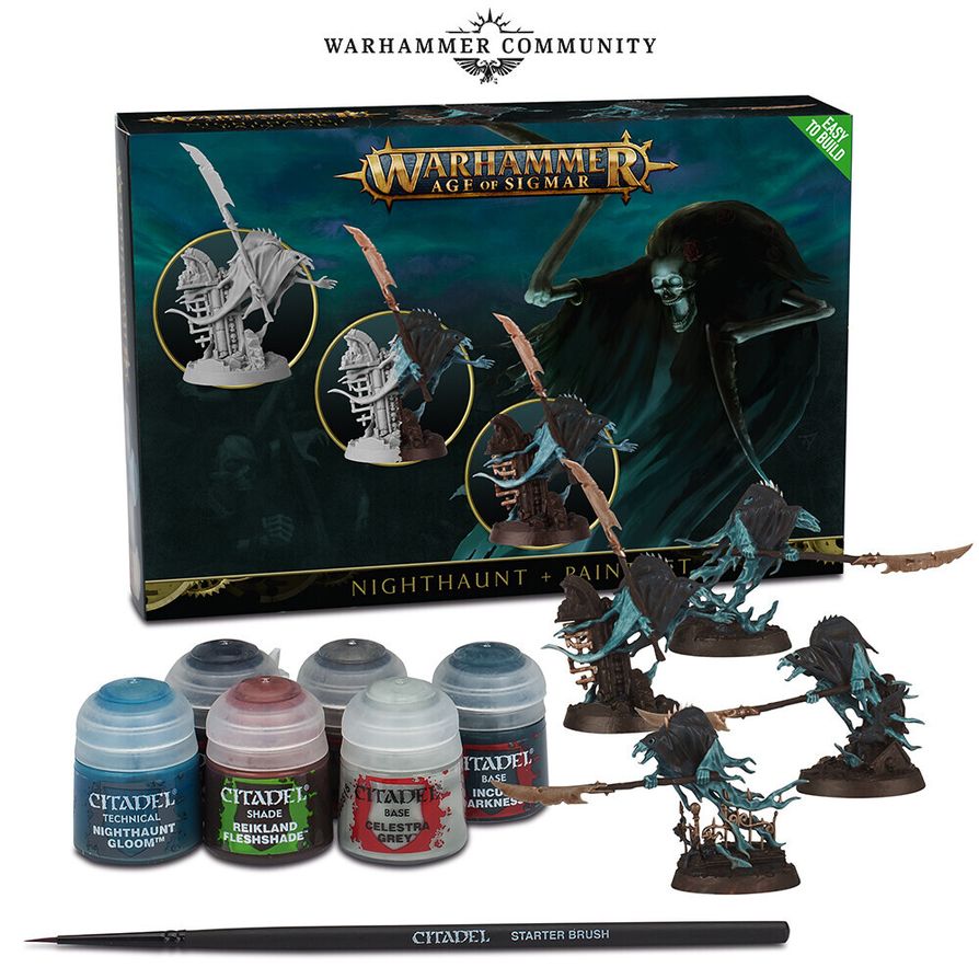 В набор так же входит кисточка Citadel Starter Brush. Три миниатюры из набора Nighthaunt Paint Set выполнены по технологии Push Fit, что позволяет легко и быстро собрать ваших призраков без помощи клея. Набор Nighthaunt Paint Set - это уникальный шанс приобрести сразу шесть красок и четыре миниатюры с кисточкой по цене семи баночек краски. Успейте собрать весь необходимый базовый инвентарь хоббиста уже сегодня вместе с набором Nighthaunt Paint Set! Красок в наборе Nighthaunt Paint Set хватит даже не то, чтобы покрасить всею армию из большого стартового набора и свободно играть на любых турнирах. А если вы хотите дополнить этот набор красок, то мы рекомендуем выбрать нужные оттенки для высветлений в разделе красок Citadel Layer и Citadel Dry.