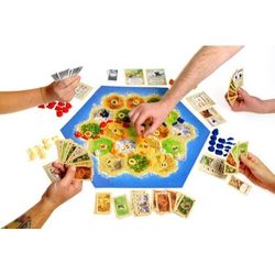 Колонизаторы – это классическая экономическая настольная игра с простыми правилами, понятными механиками и уютной атмосферой. Здесь не нужно никого уничтожать или подставлять – задача игрока развивать свою колонию: строить замки, дороги, города. Игрок, который первым освоит остров (то есть наберет 12 победных очков) становится правителем Катана.