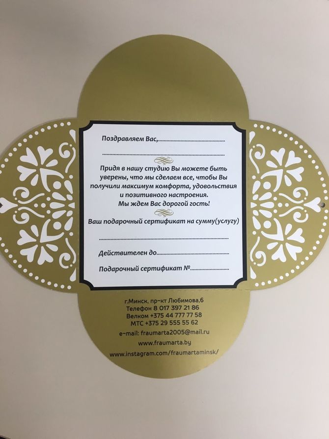 Различные услуги нашей студии на любой вкус обладателя сертификата