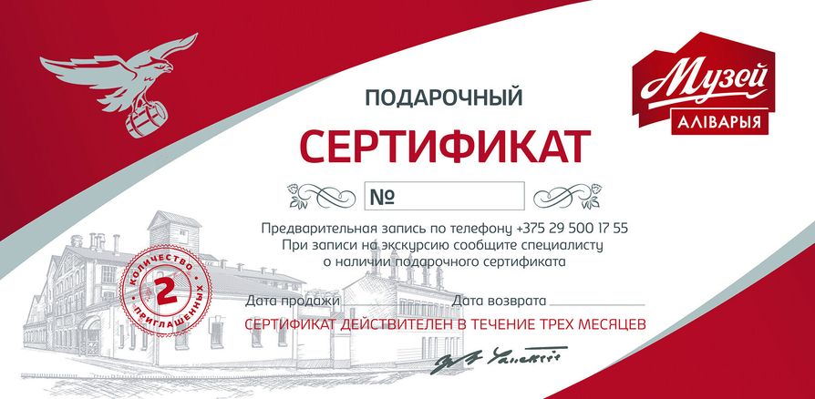 Реализация товара Сертификат на экскурсию «Исторический маршрут» (на двоих) Музей Аливария в Минске осуществляется только в стационарном торговом объекте по указанному адресу продавца. Информация о товарах и услугах на портале relax.by носит справочный характер и не является публичной офертой.
