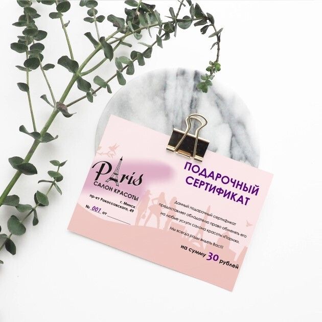 Указанная цена на Подарочный сертификат (от 30 BYN) Paris в Минске может отличаться от фактической. Если в описании или цене вы заметили неточность или ошибку, пожалуйста, сообщите нам на почту help@relax.by.