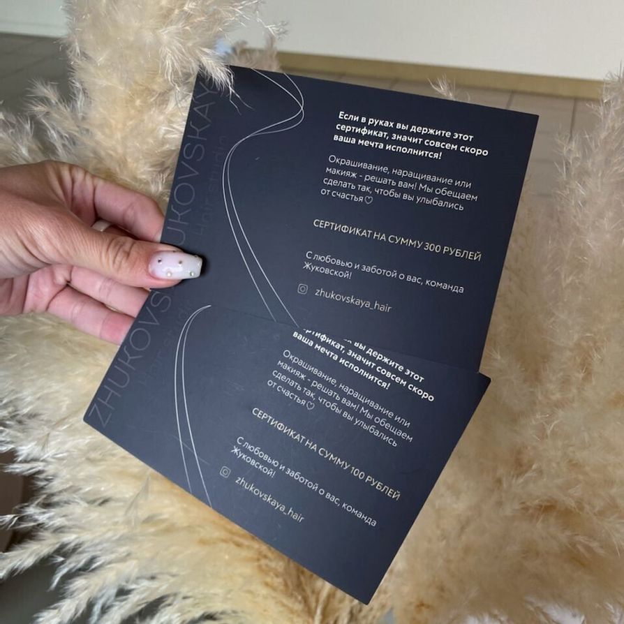 Указанная цена на Подарочный сертификат (300 BYN) Zhukovskaya в Минске может отличаться от фактической. Если в описании или цене вы заметили неточность или ошибку, пожалуйста, сообщите нам на почту help@relax.by.