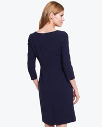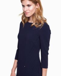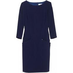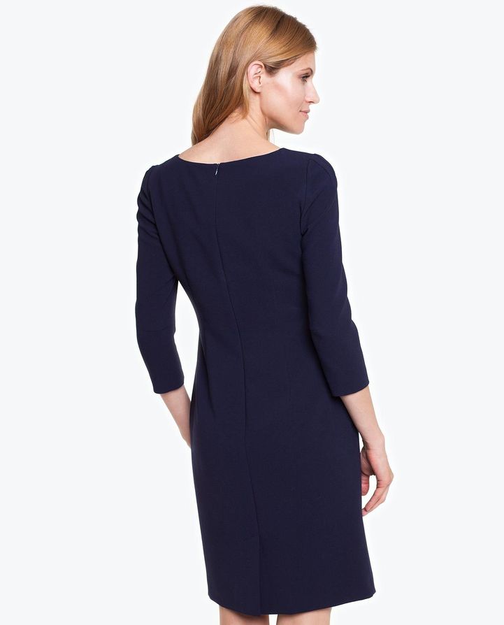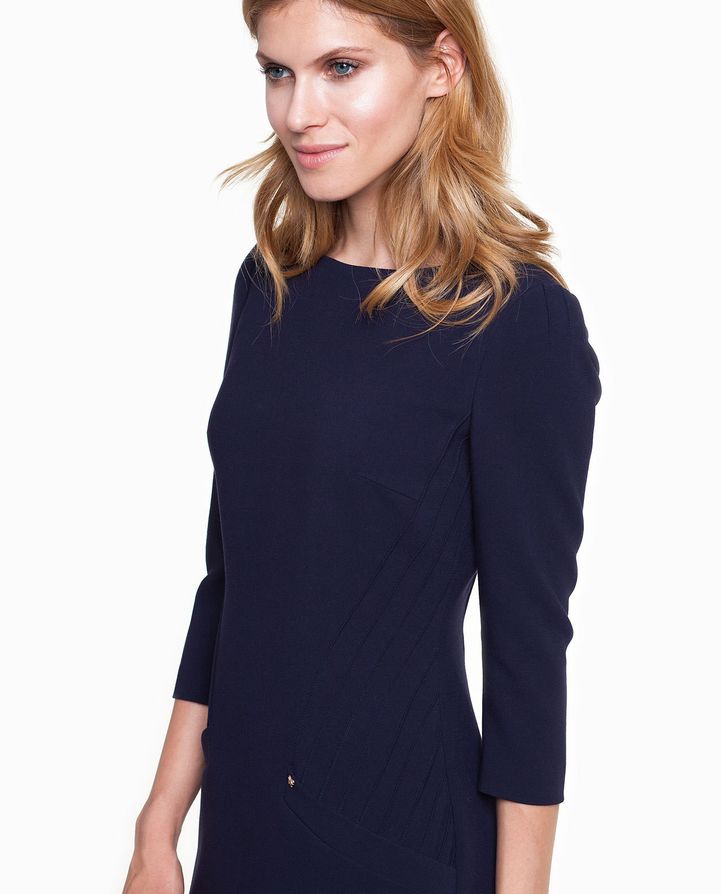 Элегантное платье с рукавами 3/4. Декоративные швы по бокам и прорезные карманы придают платью невероятный характер. Карман украшен маленьким золотым бантом. Платье комфортно носить благодаря эластичной подкладке.