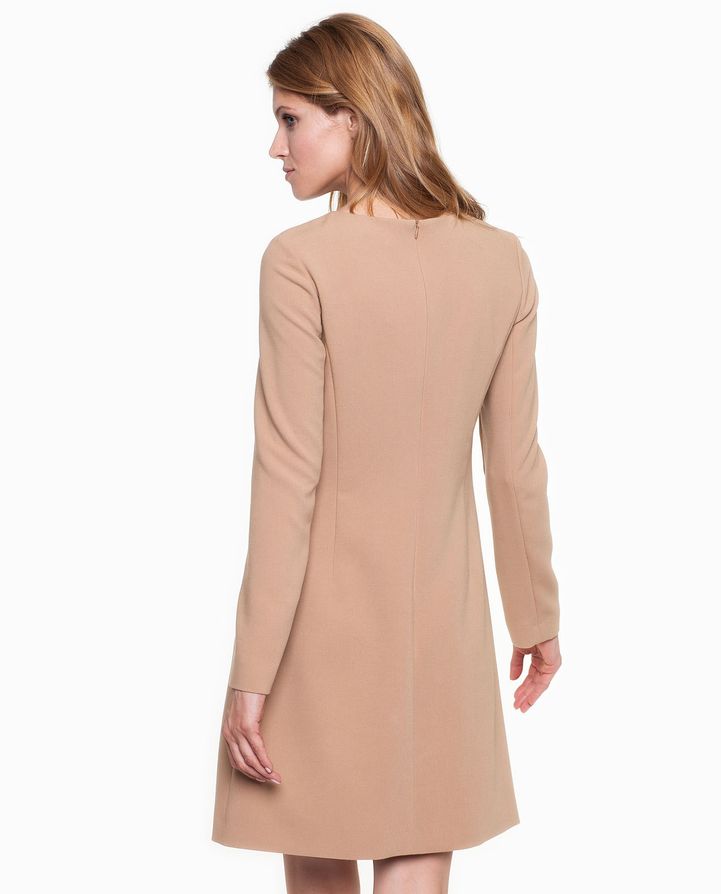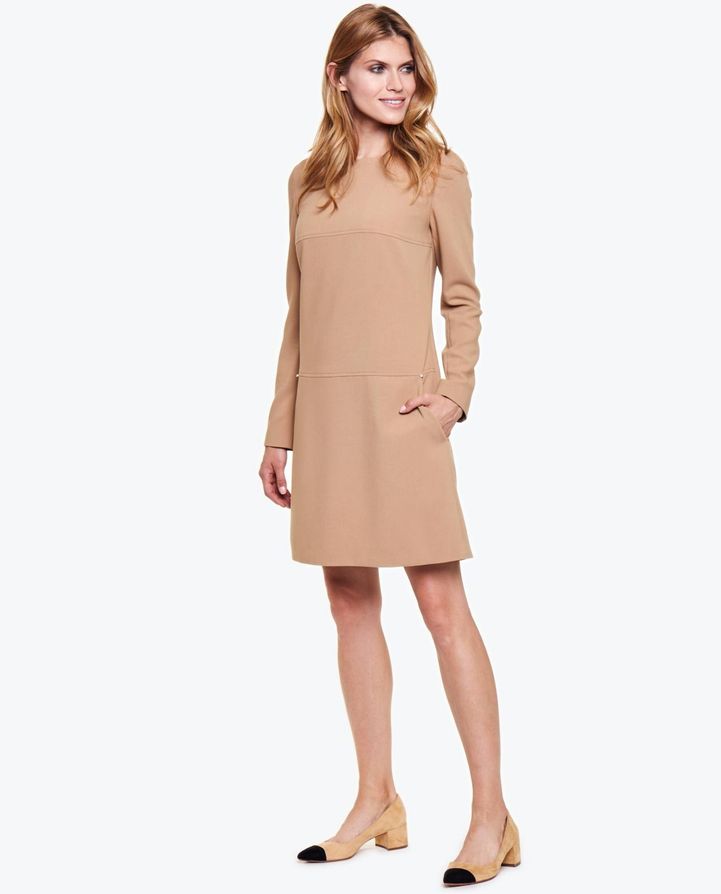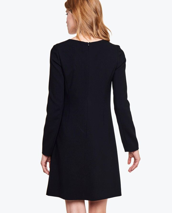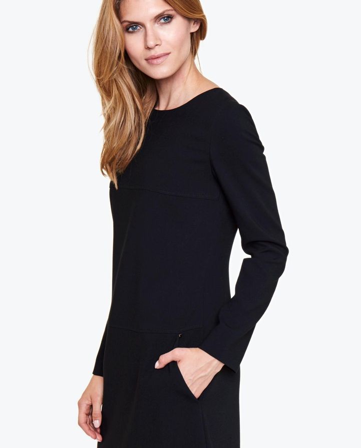 Элегантное, классическое, минималистическое платье трапециевидной формы на подкладке. Платье сделано из приятной на ощупь ткани, очень красиво ложится по фигуре. По бокам два скрытых кармана. Платье застегивается на потайную молнию сзади. Прекрасно подойдет к повседневному образу.