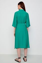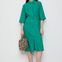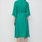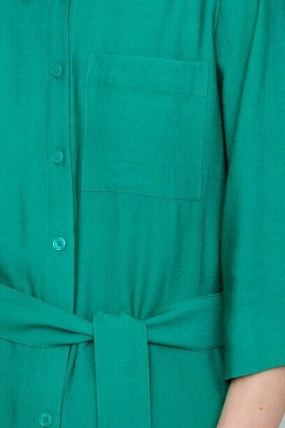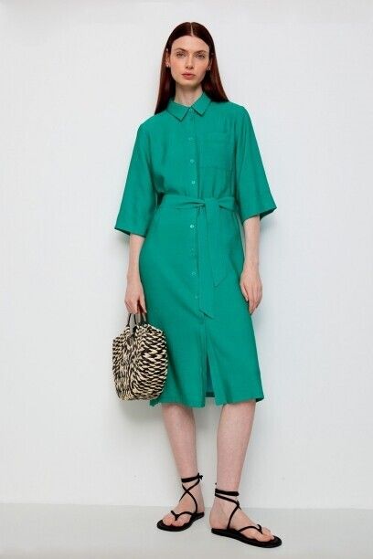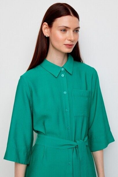 Платье в длине миди, капсула Yellow Flower. Свободный силуэт трансформируется в приталенный с помощью широкого текстильного пояса. Укороченные рукава. Сквозная застежка на пуговицы. Высокие разрезы в боковых швах. Материал изделия: нейлон, вискоза.