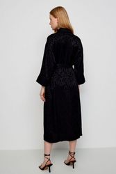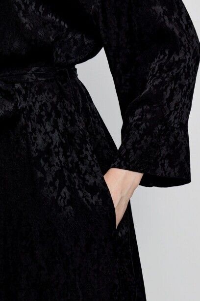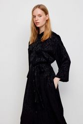 Платье-рубашка, капсула Retro mood. 100% жаккардовая вискоза с деликатным узором. Длина миди. Свободный силуэт можно приталить с помощью пояса. Рубашечный вортник. Укороченный рукав. В боковых швах карманы. Материал изделия: вискоза.