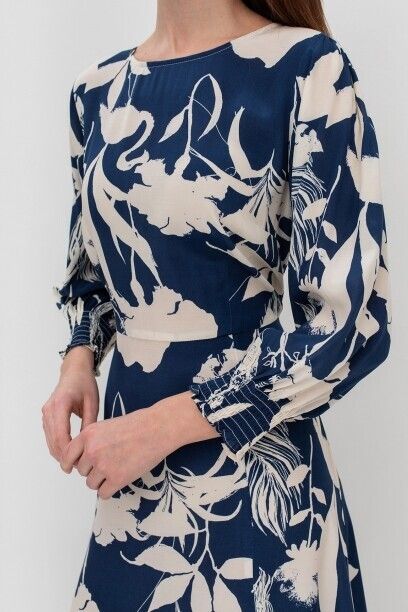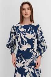 Платье с ярким цветочным принтом, капсула Retro vibes. Материал изделия: 100%вискоза. Укороченные рукава. Круглый вырез. Разрез до середины бедра. Страна производства: Китай.