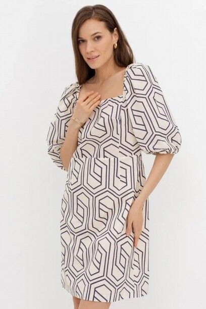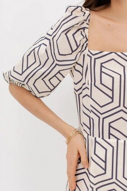 Платье с объёмными рукавами, капсула Navy Night. Материл изделия: хлопок. Имеется подклад. Длина до колена. Квадратный вырез горловины и спинки. Резинка в манжетах рукавов. Страна производства: Китай.