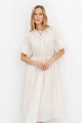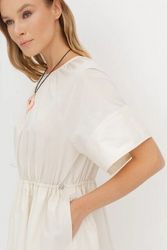 Платье с объемным верхом, капсула Parachute. Материал изделия: хлопок. Кулиса по талии. Свободный силуэт. Круглый вырез. Широкие рукава. Карманы в боковых швах. Страна производства: Китай.