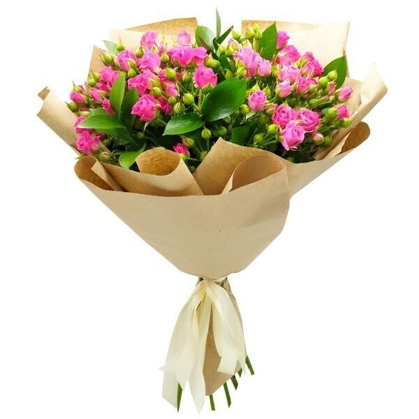 Букет из 9 веток роз, оформленный в крафт бумагу.