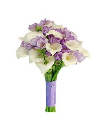 Стильный свадебный букет из 11 белых калл и 14 фрезий.