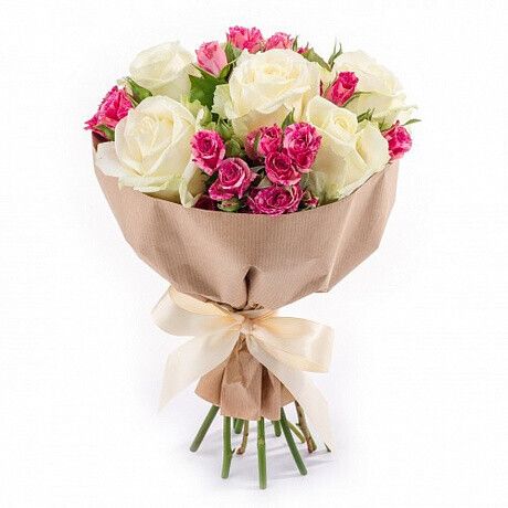 Букет из: 5 белых и 4 кустовых роз
