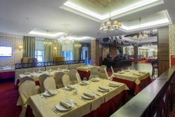 Элегантный интерьер, выполненный в светлых и спокойных тонах, позволяет при желании обыграть любые фантазии в оформлении вашего торжества. Зал оборудован круглыми европейскими столами, текстилем пастельных тонов и изящными канделябрами со свечами. Звукоизоляция позволяет сделать любой праздник камерным и приватным.