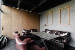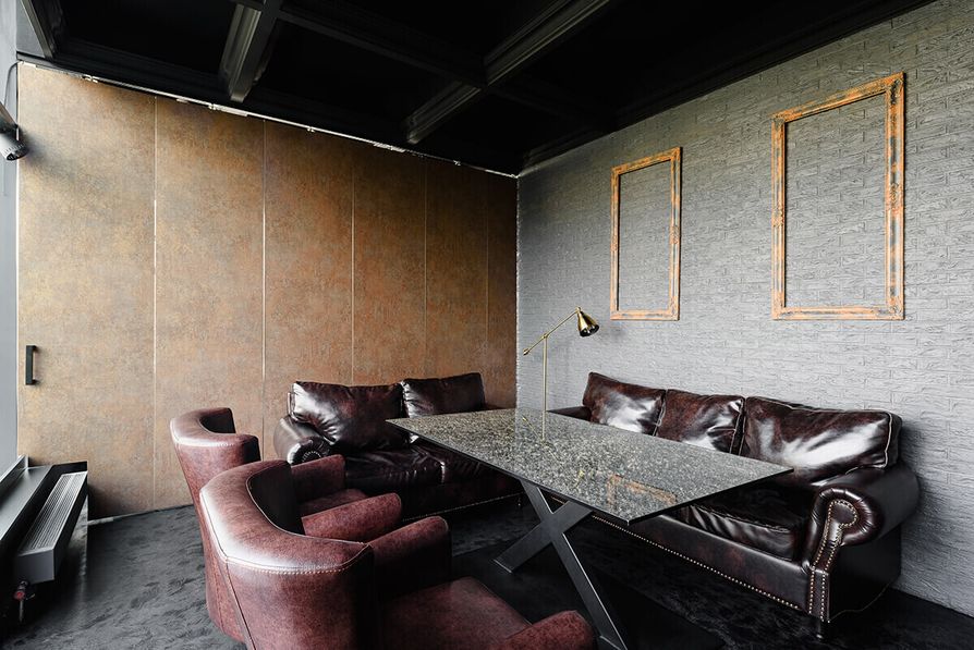Кожаные диваны и кресла ортопедической формы позволяют по-настоящему отдохнуть и расслабиться. Диваны за столом расположены таким образом, что в зале комфортно встречаться парами и проводить длительное время за разговорами, настольными играми или просмотром различных спортивных или игровых событий.