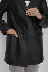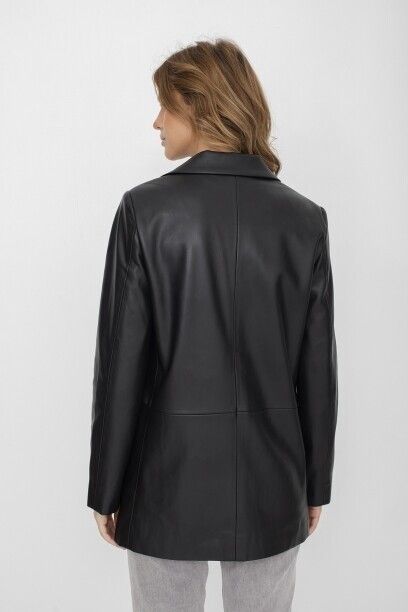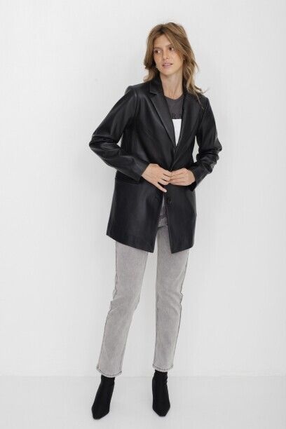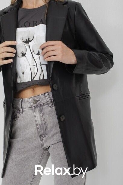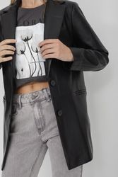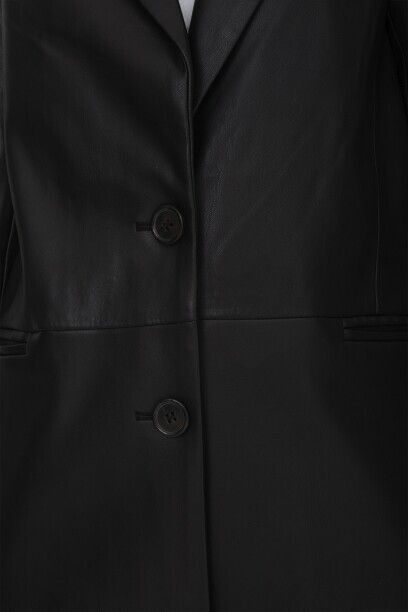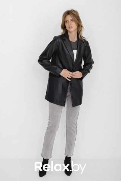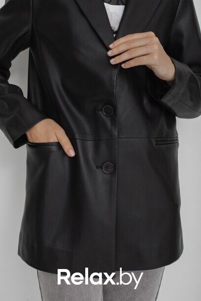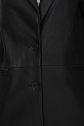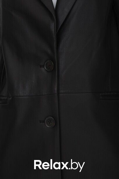 Жакет с лацканами из полиуретана коллекции Savage Autumn 2023. Материал изделия: полиуретан. Прямой крой. Длина: до середины бедра. Втачной рукав. Застежка на пуговицы. Без декоративных элементов.