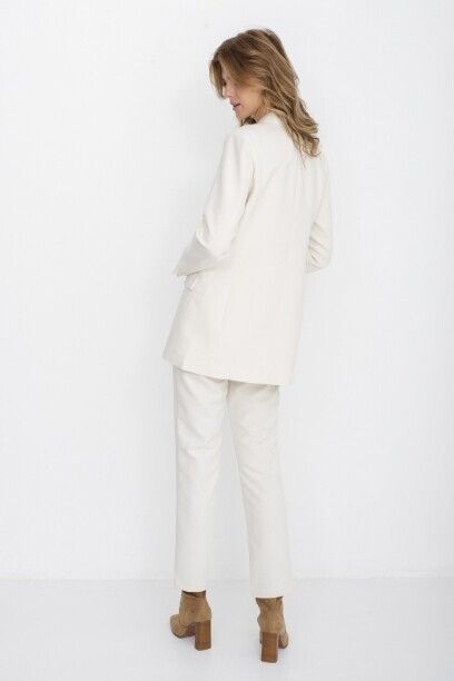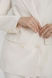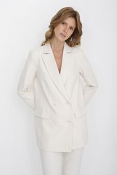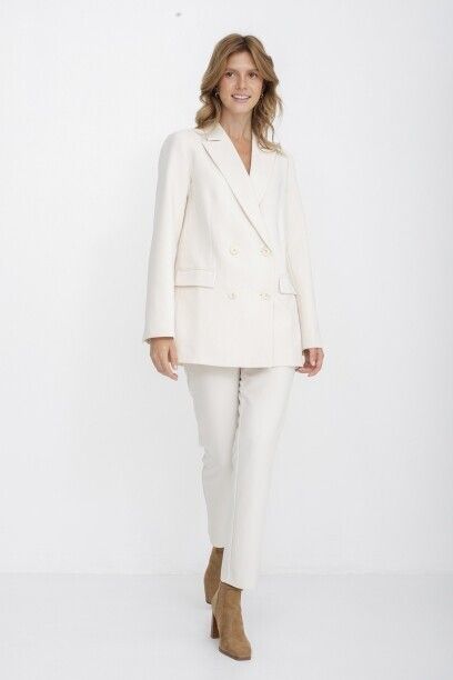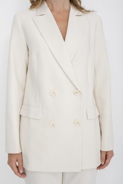 Двубортный жакет с лацканами капсулы City Night. Материал изделия: вискоза, полиэстер, спандекс. Прямой крой. Длина: до середины бедра. Застежка на пуговицы. Передние прорезные карманы. Длинные рукава с пуговицами на шлицах. Подкладка в тон. Без декоративных элементов.