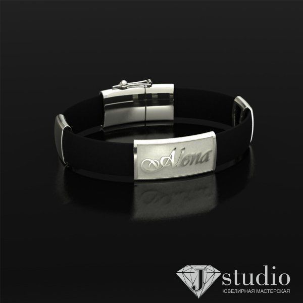 Изящный браслет на каучуковом ремешке. Подчеркнет Вашу индивидуальность. Возможно изготовление с любым именем.