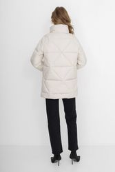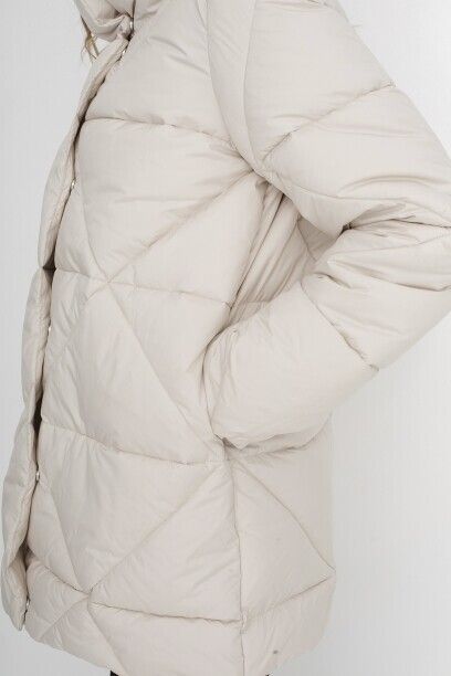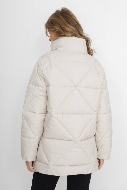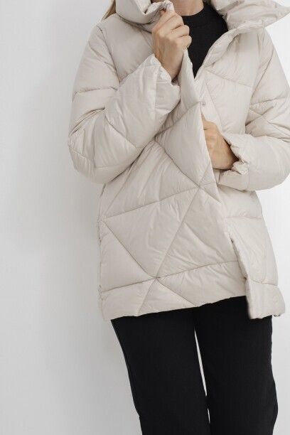 Удлинённая куртка без капюшона коллекции Savage Autumn 2023. Наполнитель: полиэстер. Прямой крой. Длина — до середины ягодиц. Высокий воротник-стойка. Имеются прорезные боковые карманы. Застёжка на кнопки. Втачной рукав. Фигурная стёжка.